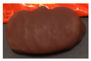 That's not what the candy looks when you take it out of the package, however. The candy doesn't have a face on it. It's just a brown pumpkin . Here's what it looks like: